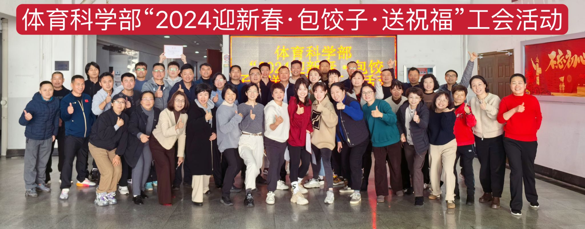 为了丰富教职工的业余生活,让大家感受到集体的温暖,营造学部集体氛围,2024年1月18日中午,在传统腊八节来临之际,a片漫画 在茶山体育馆一楼瑜伽馆开展“2024迎新春·包饺子·送祝福”工会活动。