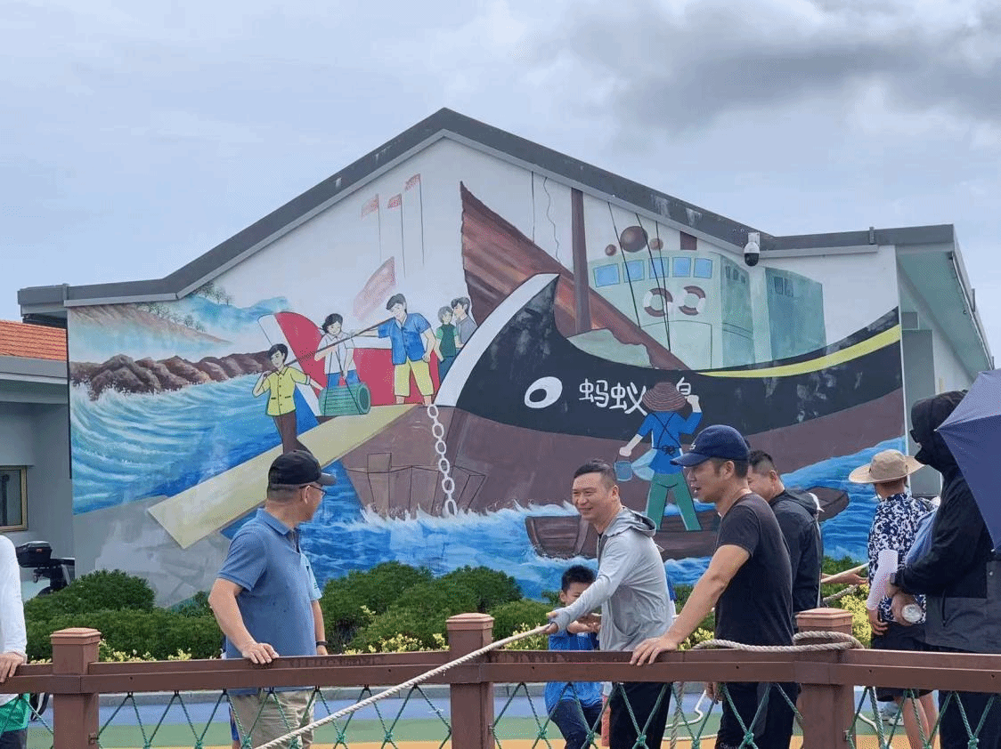 除了欣赏自然风光,还体验传统海岛文化。大家参观了蚂蚁岛三八海塘,这一传统的海防设施不仅展示了渔民的智慧,还让大家了解了海岛的历史和文化。教职工们体验了摇橹船,这是舟山第一代木帆船(开洋船)的缩影,让大家感受到了古老的航海文化。同时有多项动手体验活动:教职工们尝试了渔绳制缆、织渔网和搓草绳,感受传统手工技艺的独特魅力;一起参与了围塘捕鱼、海塘钓鱼等活动。老师们不仅体验了捕鱼的乐趣,还体会到了钓鱼的技巧和挑战。此外,大家还尝试了抛蟹笼和扳筝捕鱼,收获了丰富的海鲜,这些活动让大家感受到了海岛生活的真实体验。
