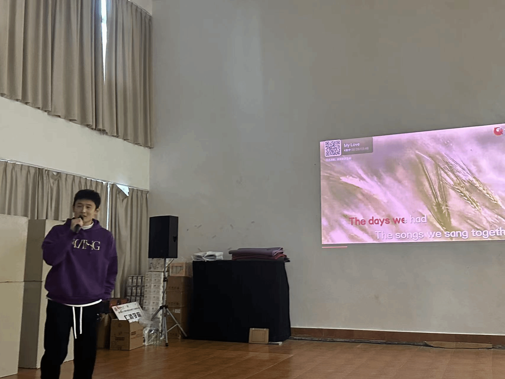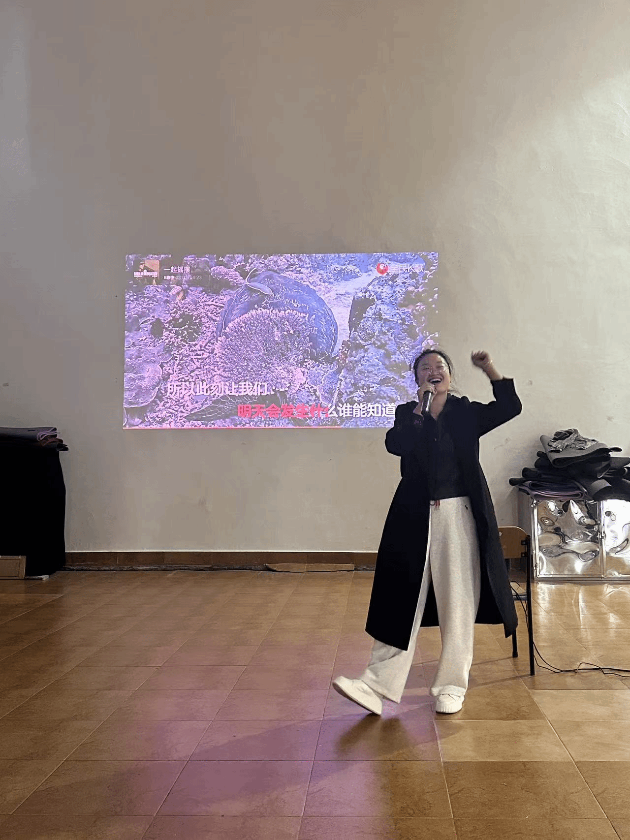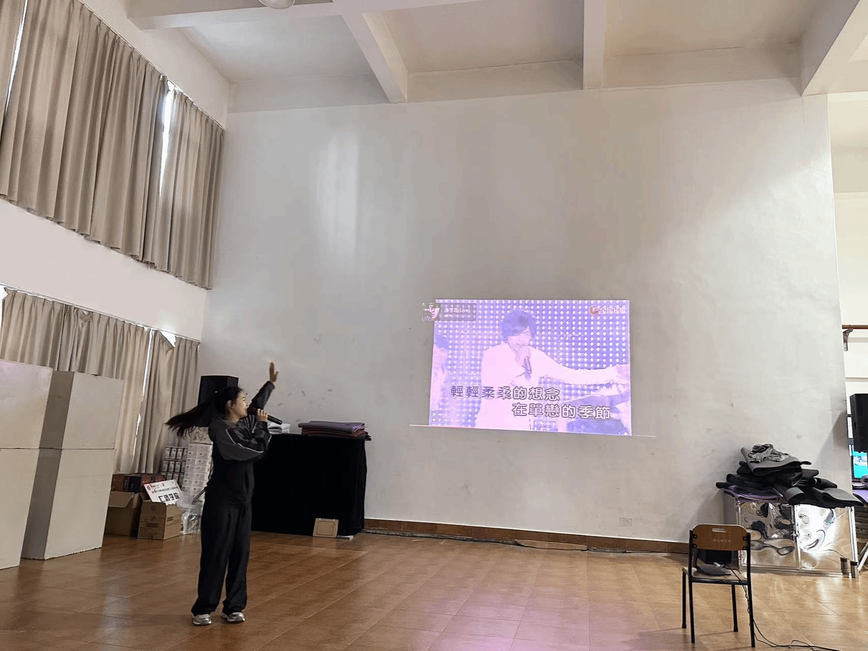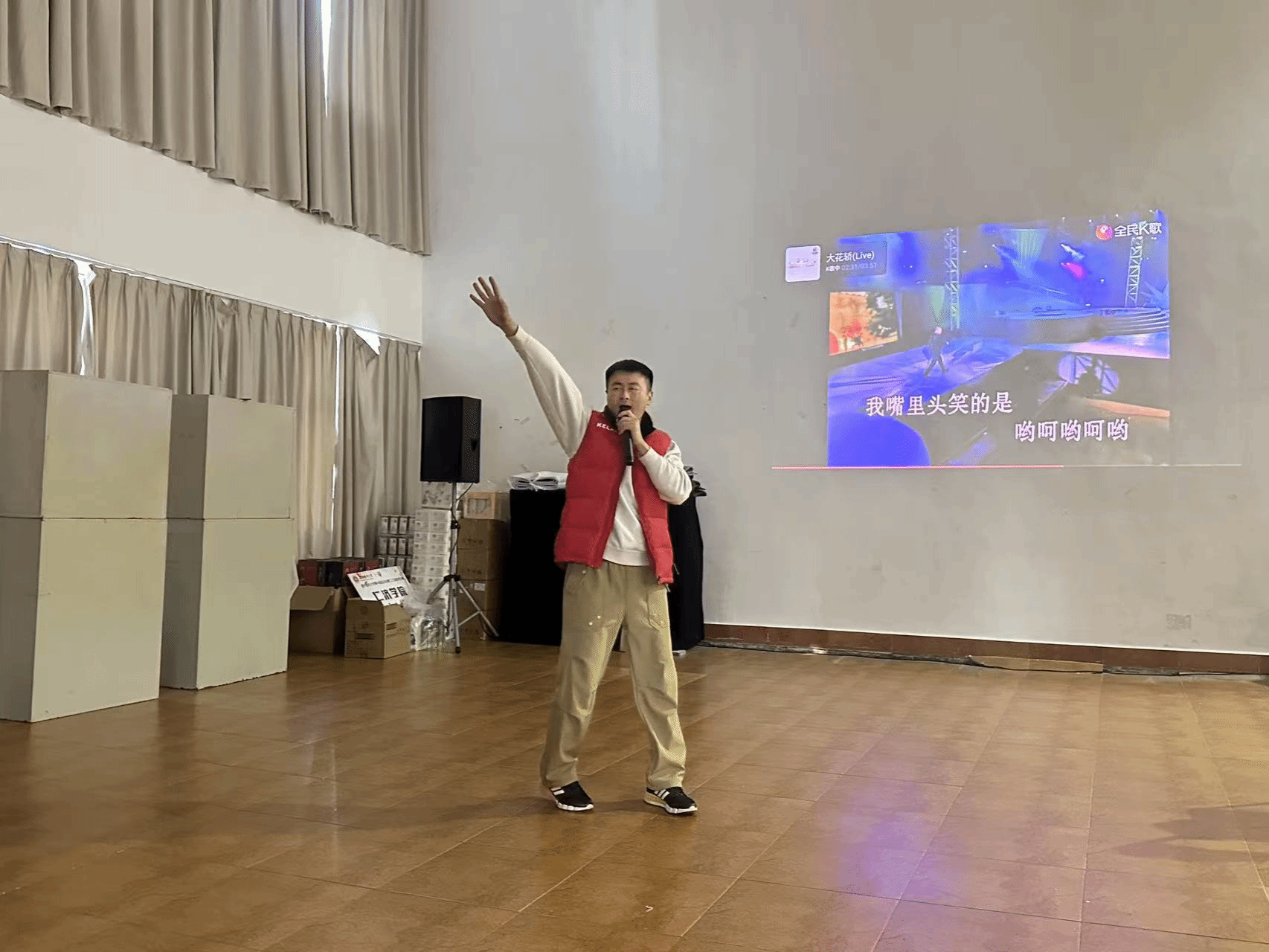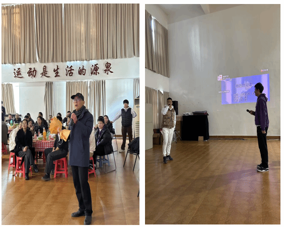 本次比赛的参赛歌曲种类丰富,包括了中文和英文歌曲,涵盖了流行、经典、民谣等多种风格。每位选手都用自己独特的风格演绎了不同的歌曲,赢得了观众们的热烈掌声和喝彩。参赛者赵建中老师用他独特的嗓音,充满力量与激情的演唱了《精忠报国》,赢得了满场掌声。王在韬老师演唱的英文歌《My love》深情动人,引起了大家的共鸣。王筱玮老师带来的歌曲《一起摇摆》节奏轻快,语言流畅,现场观众不自觉地一起舞动摇摆。还有许绍哲和焦倩倩老师共同演唱的老歌《知心爱人》,旋律悠扬,情感真挚,观众们发出阵阵喝彩声。无论是激情四溢的歌曲,还是柔情似水的演绎,大家都尽情地投入到这场歌唱盛宴中。平日里在运动场上挥洒汗水、传授体育知识的他们,此刻化身为舞台上的 “歌者”,用歌声传递情感,用旋律展现自我。活动现场气氛热烈,高潮迭起,除了精彩的歌唱比赛外,还穿插了击鼓传花的趣味游戏,让整个活动充满了欢乐与惊喜。