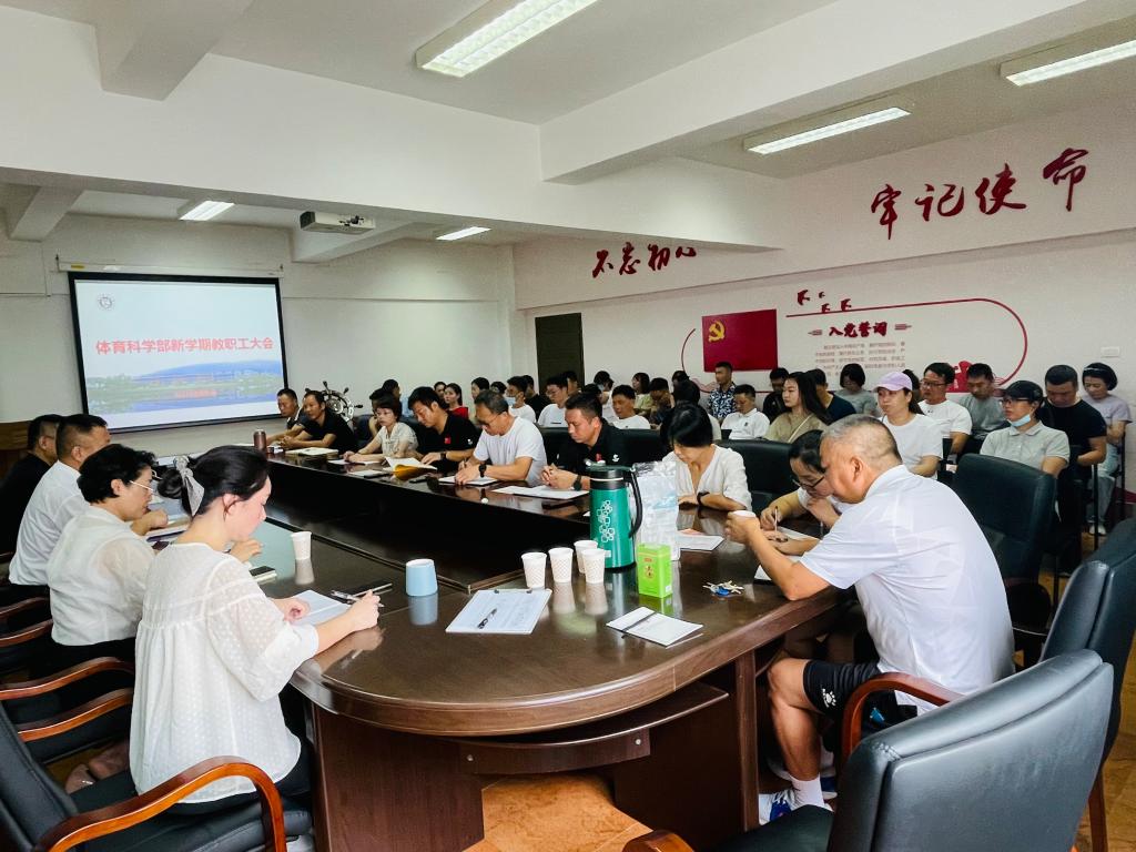 刘海平副主任首先向全体教职工通报了学部行政暑期工作,重点对学部在学校绩效考核文件的修订中所提的意见和建议进行传达和解说。同时,对本学期教学、竞训、科研、群体等工作进行布置,并提出要求。重点指出,今明年是省大运会备战之年,部门要在认真完成教学任务的同时,加强校竞训队建设,争取在浙江省第十六届大学生运会上取得佳绩,获得“校长杯”。