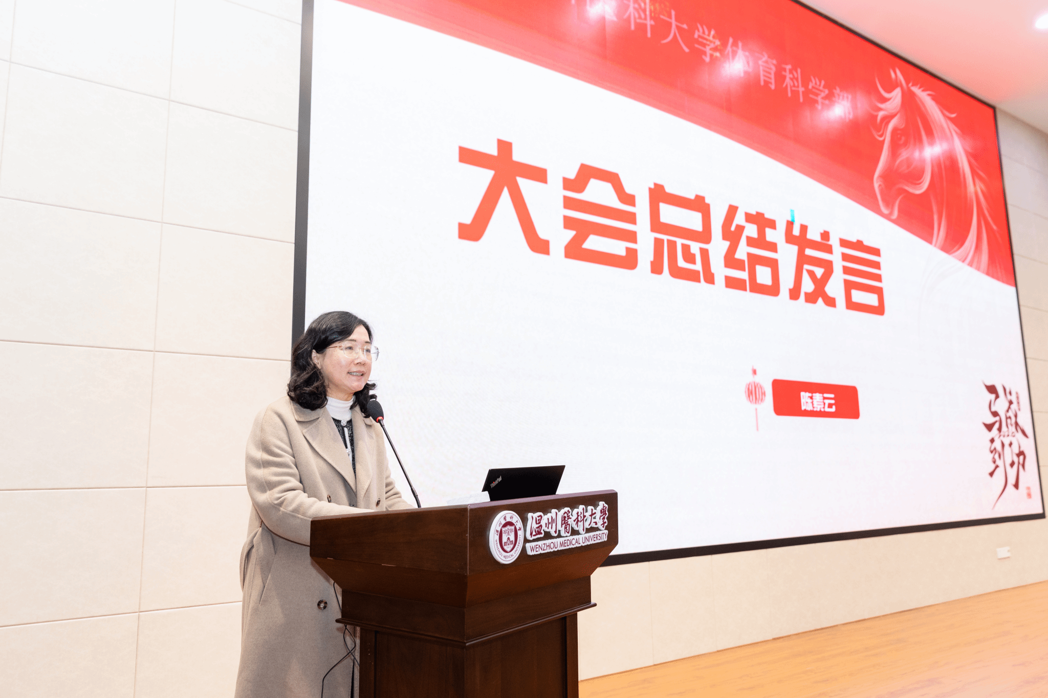 陈素云作大会总结发言。她指出,2026年是学校“双一流”创建的冲刺决胜之年,本次会议既是对上年工作的全面复盘,也明确了新一年的发展方向。全体教职工要深入落实校党委书记金焕民在学校新春第一会上的“双一流”攻坚部署,紧扣学校战略定位、结合学部实际推进全年工作。她着重提出三点工作要求:一要强化党建引领,锻造坚强堡垒。创新“党建+业务”融合模式,打造体育育人特色党建品牌,以教学技能竞赛激发教师争先动力,培育样板党支部,充分发挥基层党组织战斗堡垒作用;二要锻造教师队伍,激发发展动能。强化师德师风建设,将教育家精神贯穿教学科研全过程,加大人才引育与教师成长支持力度,构建可持续发展的高水平师资队伍;三要深耕体育育人,彰显特色价值。紧扣教育部“健康第一”教育理念要求,深化体育教学改革、优化课程体系,打造校园体育文化品牌,同时拓展社会体育服务效能,擦亮a片漫画 工作名片。最后,陈素云号召全体教职工以马不停蹄的干劲、马到成功的信念,全力攻坚“双一流”创建任务,共同书写a片漫画 事业发展新篇章。