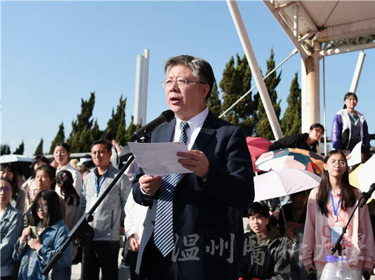 庄严肃穆的升旗仪式后,李校堃致开幕词并宣布开幕。他指出,长期以来,我校贯彻落实“健康中国”战略 ,以“为人民群众提供全方位全周期健康服务”为目标,以“德智体美劳”全面发展为教育方针,不断深化体育教学改革,大力开展各项体育活动,帮助广大师生在体育锻炼中享受乐趣、增强体质、健全人格、锤炼意志,培养终身锻炼的习惯,形成了浓厚的体育文化氛围。李校堃表示,一年一度的运动会,是全校师生精神风貌的展示,也是对体育教学工作成果的检阅,希望全体裁判员和工作人员恪守“公开、公平、公正”的竞赛准则,全体运动员秉承“更高、更快、更强”和“自信、自强、自尊”的精神,赛出水平、赛出友谊、赛出风格。