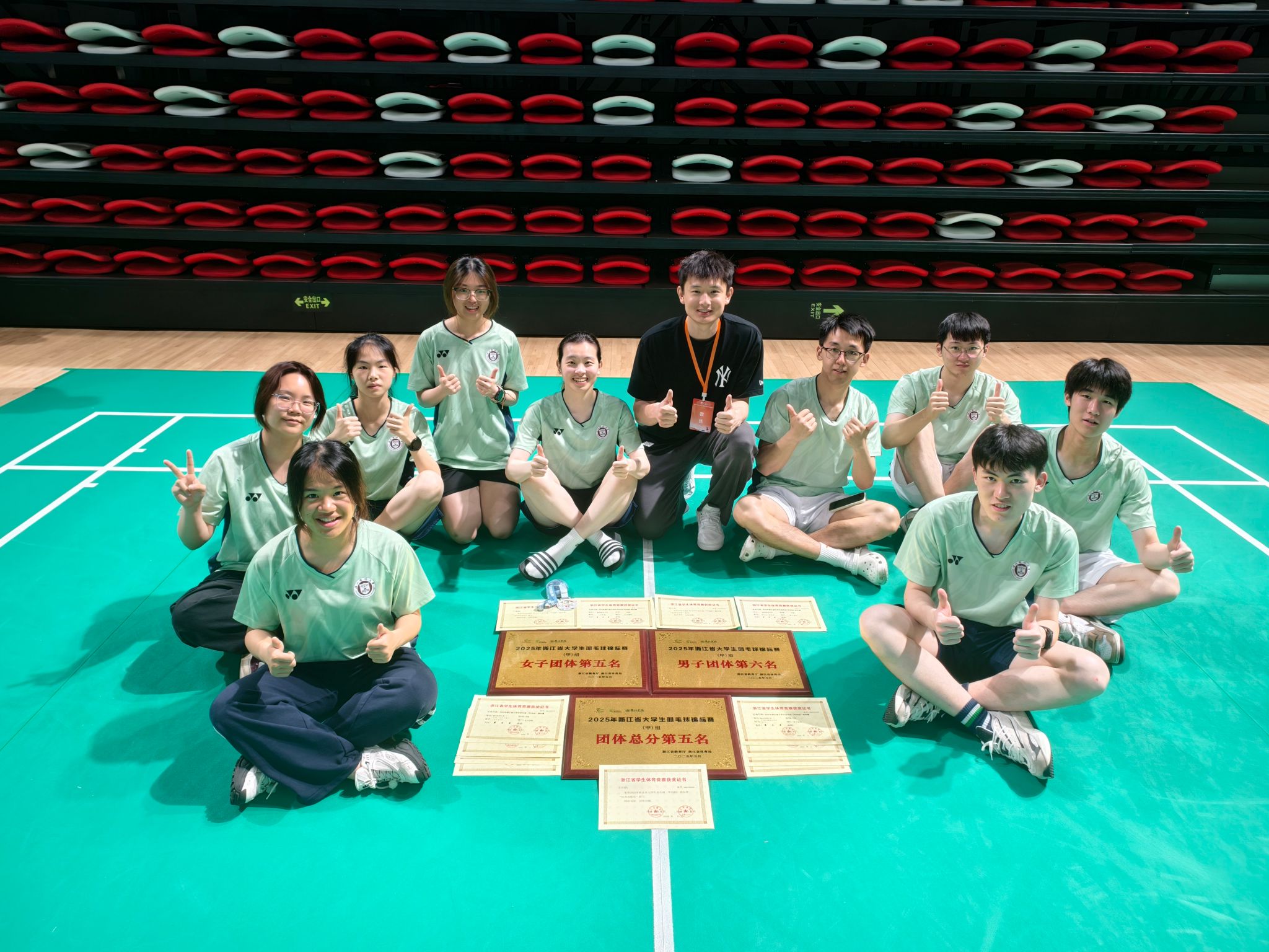 队伍每周最少组织三次训练,只为了大家共同的目标:提升自己,磨练意志,在全省大学生运动会和锦标赛上为学校争夺荣誉。校队在全体队员的共同努力和王在韬教练的带领下,成绩逐年上升,位列全省前茅,在2025年浙江省大学生羽毛球锦标赛上,队伍获得了女单第二名、男双第四名、女团第五名、男团第六名、团体总分排名全省第五的优异成绩,从全省近50所甲组高校中突出重围,兑现了大家平日的努力。