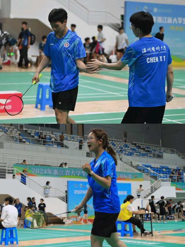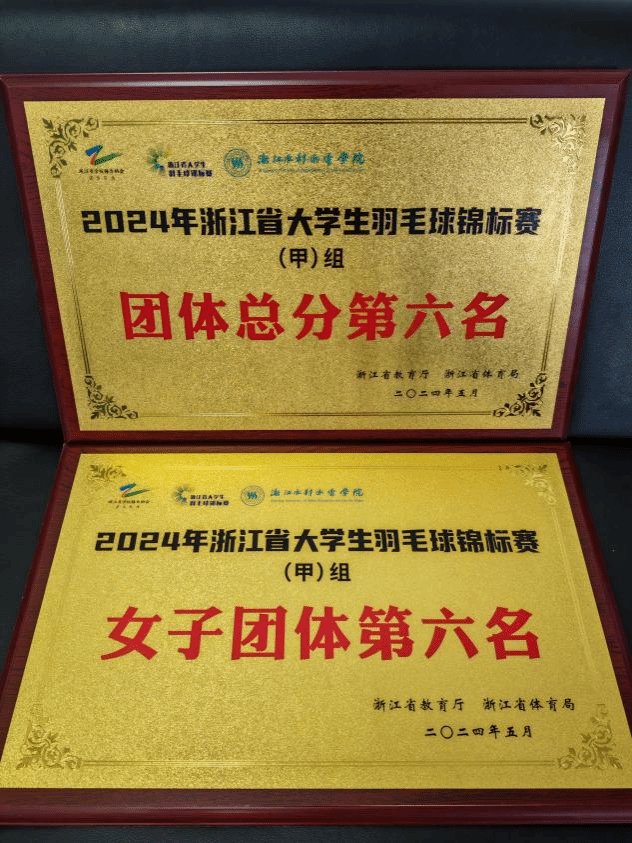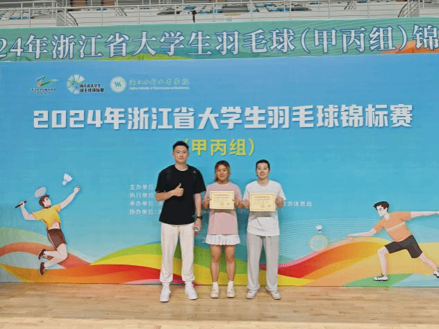 5月20日至24日,2024年浙江省大学生羽毛球锦标赛(甲丙组)在湖州南浔浙江水利水电学院落下帷幕。本次锦标赛由浙江省教育厅、浙江省体育局主办,省内共70多所高校、500多名运动员参加竞技。由王在韬担任教练的我校代表队在比赛中不畏强手,打出了风格,赛出了水平, 经过为期五天的奋勇拼搏,在成绩上取得历史性突破,王喻菡和干佳伊在女子单打项目中分别获得亚军和第八名;女团荣获第六名。
