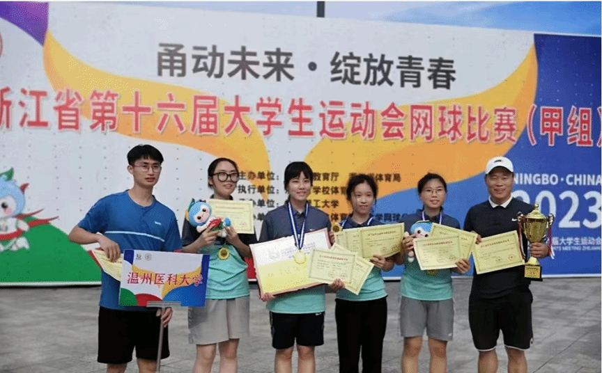 浙江省第十六届大学生运动会已经拉开帷幕,我校网球队、游泳队、健美操队、羽毛球队、武术队陆续参加了代表浙江省大学生最高水平的体育盛会。参赛队员们精心备战、不畏强手,发扬顽强拼搏、勇于争先的精神,在教练员的科学训练指导下,赛出了风格、赛出了水平,充分展示了温医大学子的精神风貌。目前为止,我校体育代表队喜获2金4银2铜的佳绩。同时,校健美操队、网球队获得“体育道德风尚奖”,网球队教练王志朋、游泳队教练施亦男荣获 “优秀教练”称号!