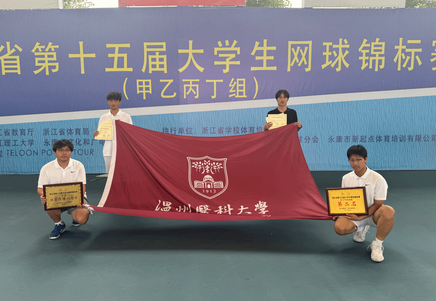 5月19-24日,在金华市永康市新起点网球中心举行的浙江省第十五届大学生网球锦标赛中,a片漫画 代表队再创佳绩。在学部徐鑫老师的带领下,校网球队在高手云集的甲组比赛中表现出色,荣获男团亚军、男双亚军的优异成绩,并获得体育道德风尚奖,为学校赢得了荣誉。
