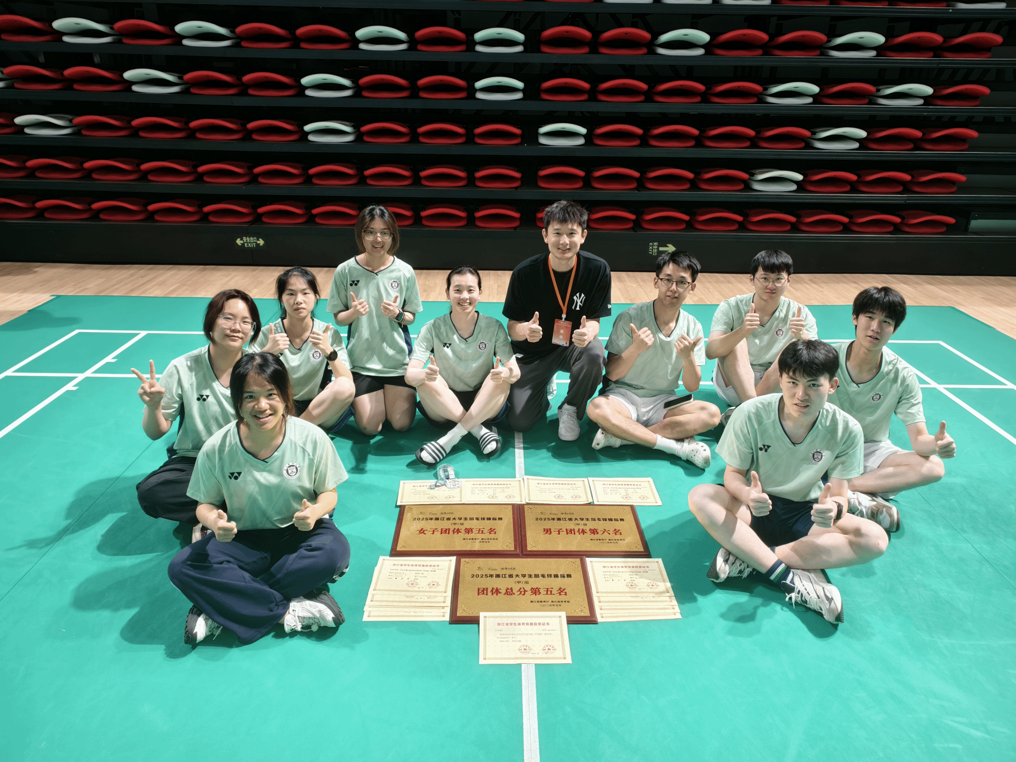 5月26日至30日,2025年浙江省大学生羽毛球锦标赛(甲丙组)在衢州江山市成功举办。我校羽毛球队派出4名男队员、5名女队员共9名运动健儿出战。本次比赛共有48支甲组参赛队伍、550余名运动员参与竞争 ,经过五个比赛日的鏖战,队员们凭借一年来的训练成果和顽强拼搏的精神,取得了历史性突破。